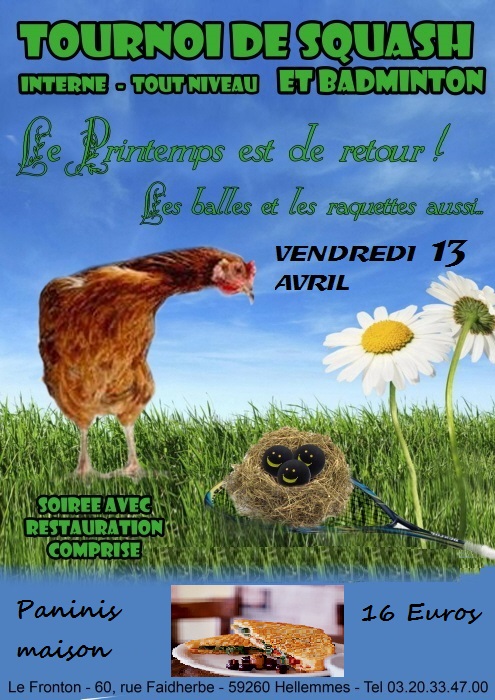 Tournoi de squash et Tournoi de Badminton au FRONTON — 13 Avril 2018